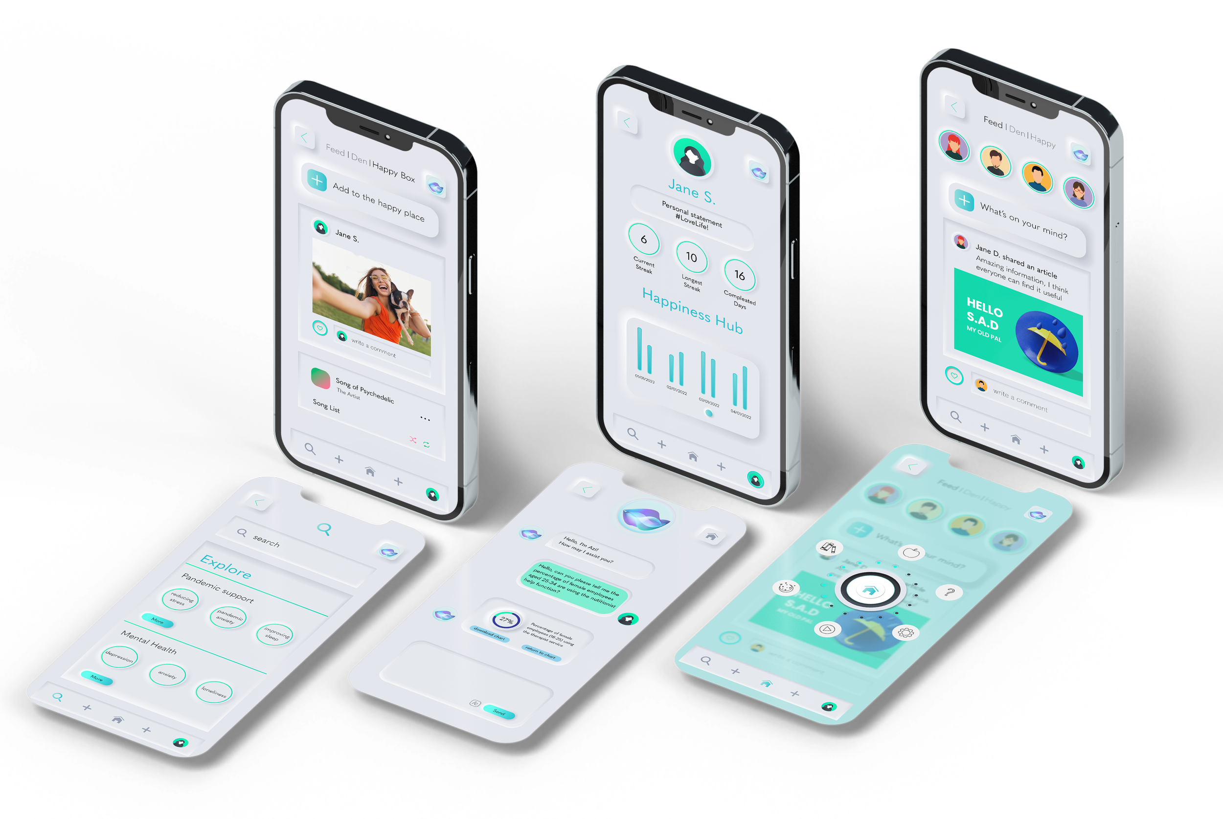 Our app delivers a comprehensive range of features designed to provide users with a holistic one-stop shop for their wellbeing support.